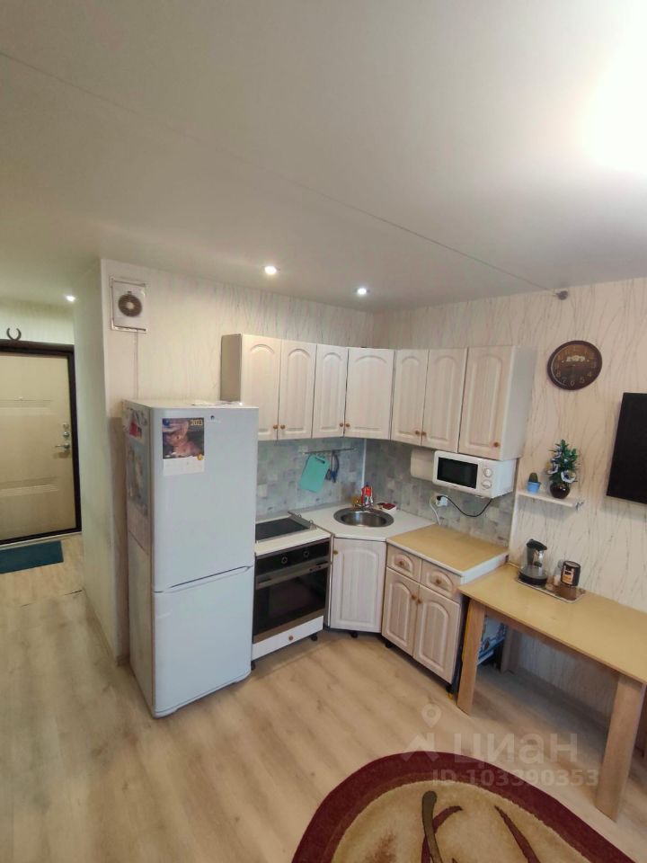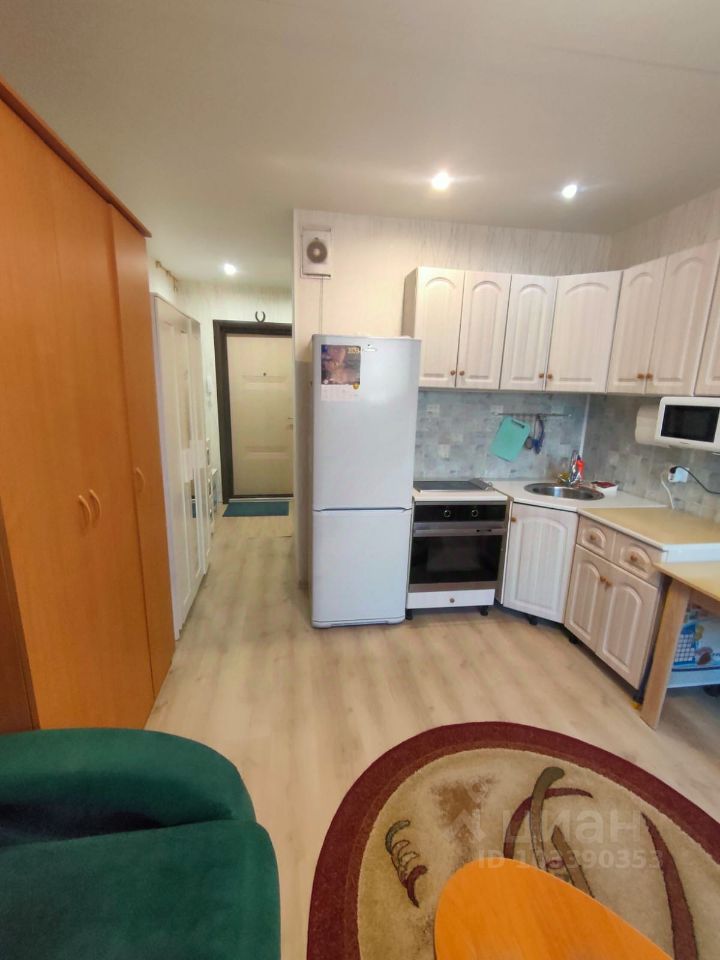 Чистая, уютная студия, 22.4 кв.метра ( БЕЗ УЧЕТА ПЛОЩАДИ БАЛКОНА,), никогда не сдавалась в аренду, в отличном состоянии. Окно широкое, имеет подоконник( что характерно не для всех студий.), что делают комнату светлой и уютной.