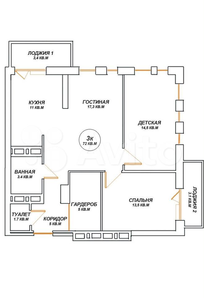 | Площадь, кв.м. | 72 |