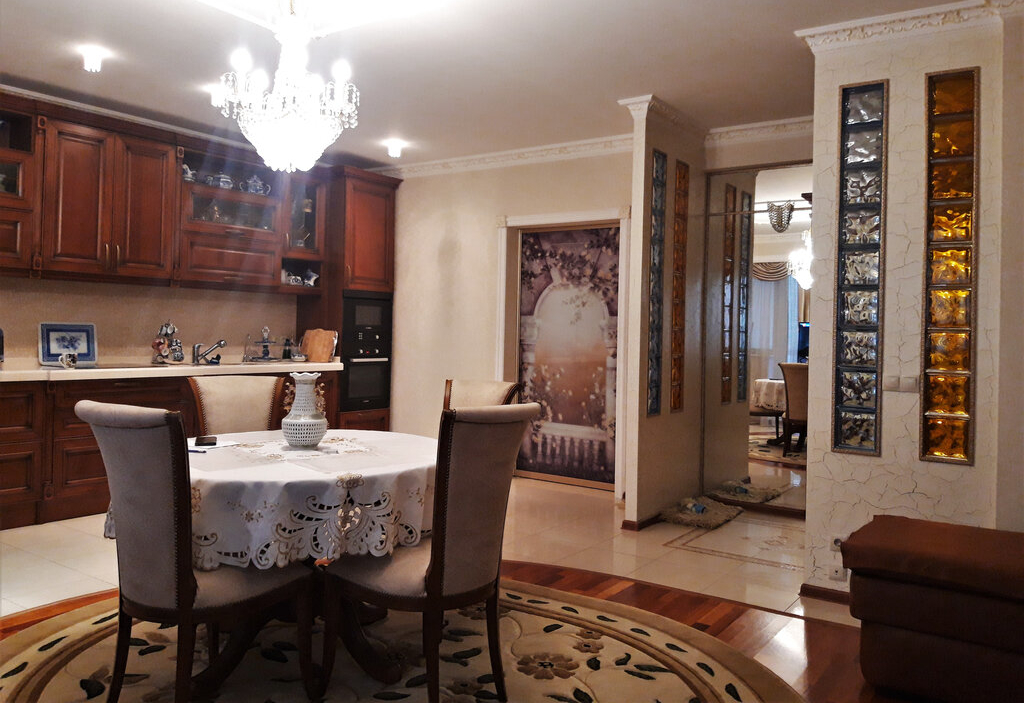 Роскошная эстетичная квартира в центре Новосибирска для людей, предпочитающих уют и спокойствие, элегантный, респектабельный стиль. Отделка уравновешена, выполнена в благородных тонах, с элементами декора. В оформлении использованы только качественные натуральные материалы: дерево, камень, керамика, декоративная штукатурка. Планировка представляет собой просторную гостиную с балконом, стилизованным под летнюю веранду, отдельную спальню с балконом, сан.узел с сауной и качественным оборудованием из санфаянса. Пространство гостиной эстетично зонировано на зону отдыха, обеденную и кухонную зону с гарнитуром и качественной встроенной бытовой техникой. За декоративной стеклянной дверью, выполненной как панно, расположена вместительная гардеробная комната. Квартира оборудована элементами "умного дома". Заменены инженерные коммуникации. Общая площадь в объявлении указана без учета площади балконов. Свободная продажа.